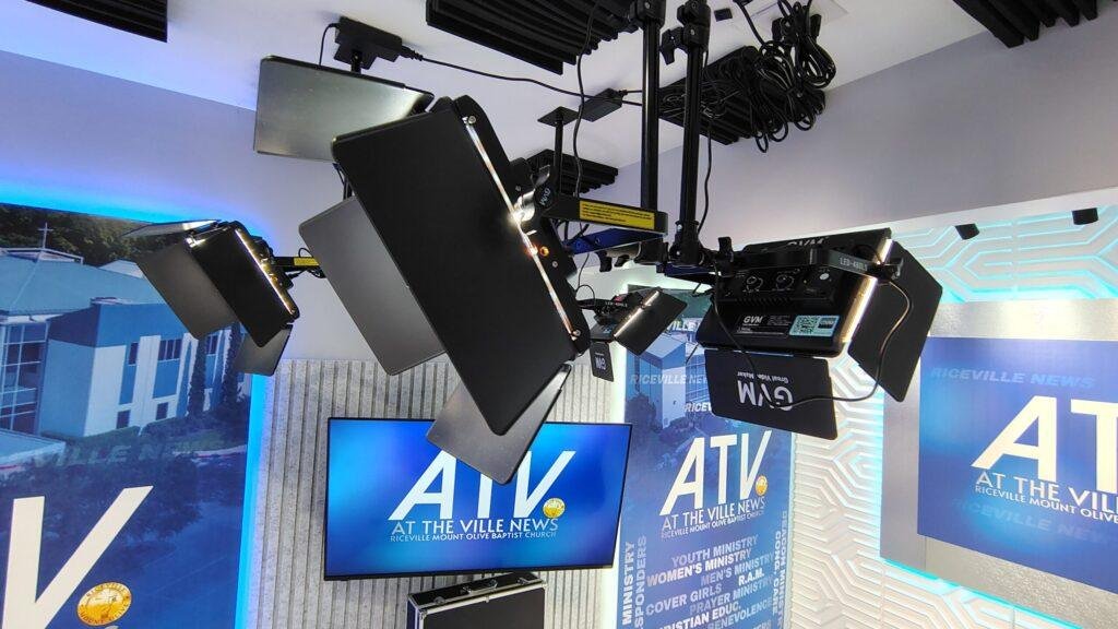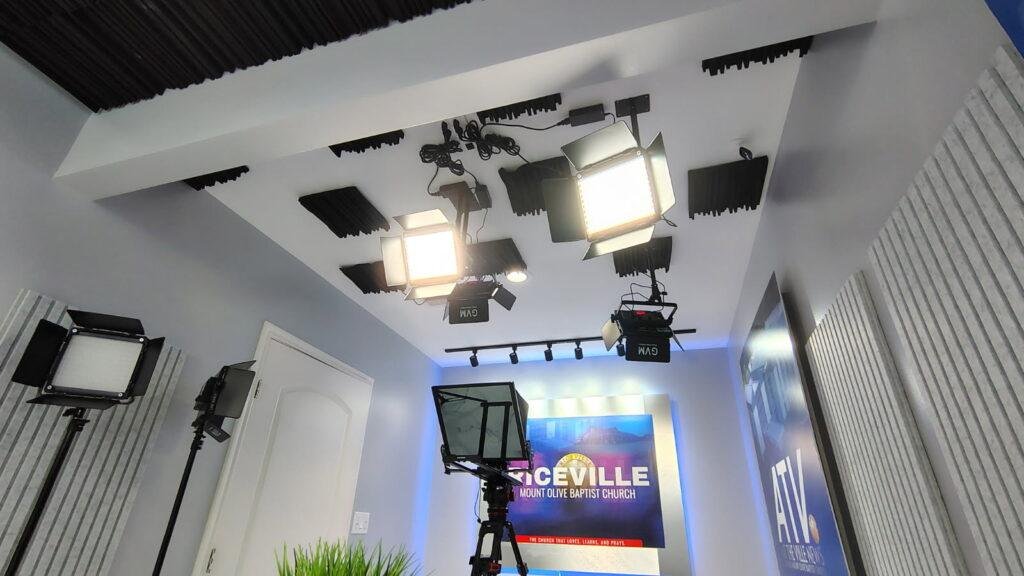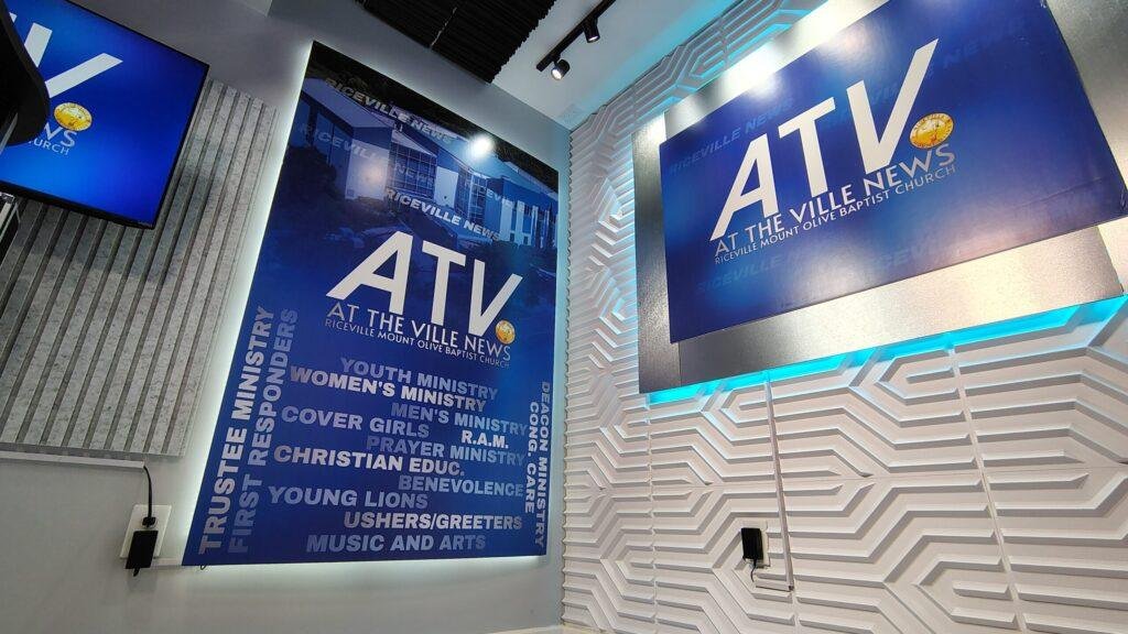 After extensive planning and the development of over 40 design concepts, Tarriance Productions devised a final design that converted a former office and storage area at Riceville Mount Olive Baptist Church into a state-of-the-art broadcast studio for church news. This impressive and fully functional space combines aesthetic appeal with practicality, featuring optimized lighting, custom-designed backdrops, and a layout designed for professional presentations. This transformation enhances the church’s media capabilities, providing a high-quality environment for engaging video announcements and broadcasts.